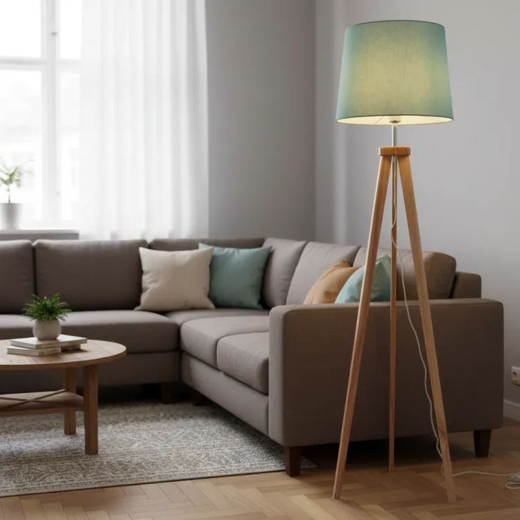 CÓD. 9059 STEHLAMPE AUS ESCHEHOLZ MIT NATURLACK UND TC-STOFF IN AQUAMARIN