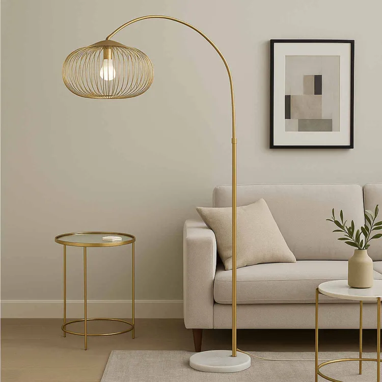 CÓD.3299 LUMINÁRIA DE CHÃO 1 LUZ E27 ACRÍLICO E AÇO PINTADO DE DOURADO