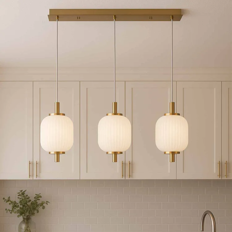 CÓD.3307 LÂMPADA LED 3 TULIPAS ACRÍLICO BRANCO E AÇO DOURADO